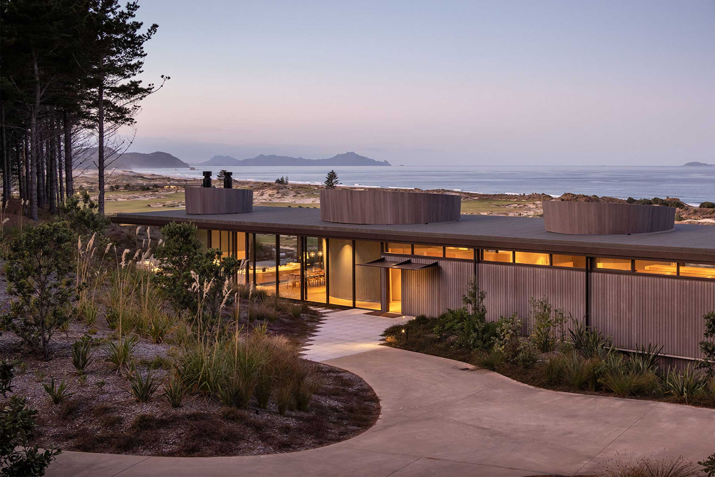 Designed by Auckland based architectural firm Cheshire Architects, Fielding House is positioned in an idyllic location, with tall pine trees surrounding the rear and coastal grasses and panoramic ocean views at its doorstep.
